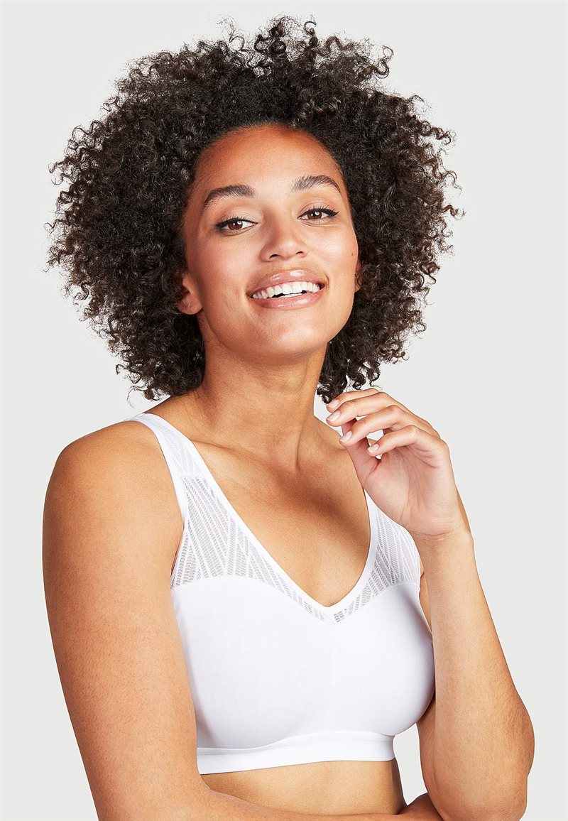 Välsittande sport-bh perfekt för lättare aktivitet. Formpressade kupor i dubbla lager mikrofibertrikå. Breda, lätt vadderade axelband för extra stöd och komfort. Dekorativa meshpartier upptill. En riktigt skön aktivitets-bh med god rörelsefrihet vilket också gör den bekväm att använda i vardagen. Följer kroppens naturliga former och rörelser. • Formpressad kupa • Ovadderad • Bygellös • Reglerbart axelband med lätt vaddering • Infällda, dekorativa jacquard-meshpartier • Bred hysk- och hakknäppning bak för bekvämlighet och stöd • Resår i microfiber under bysten